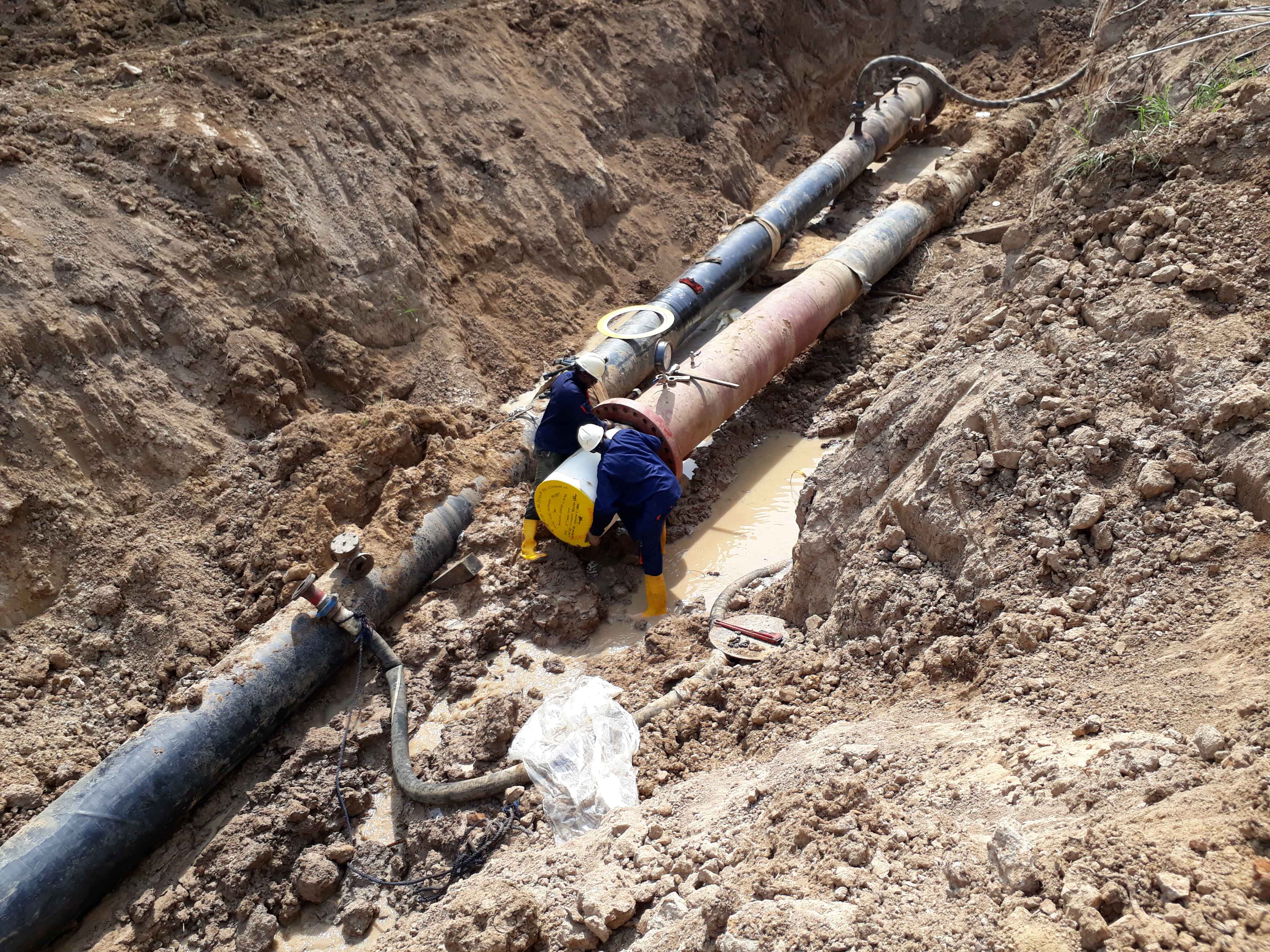 Isolation works, Complete filling with inhibited clean water using corrosion inhibitors and hydro-testing of entire 2oinch gas pipeline.